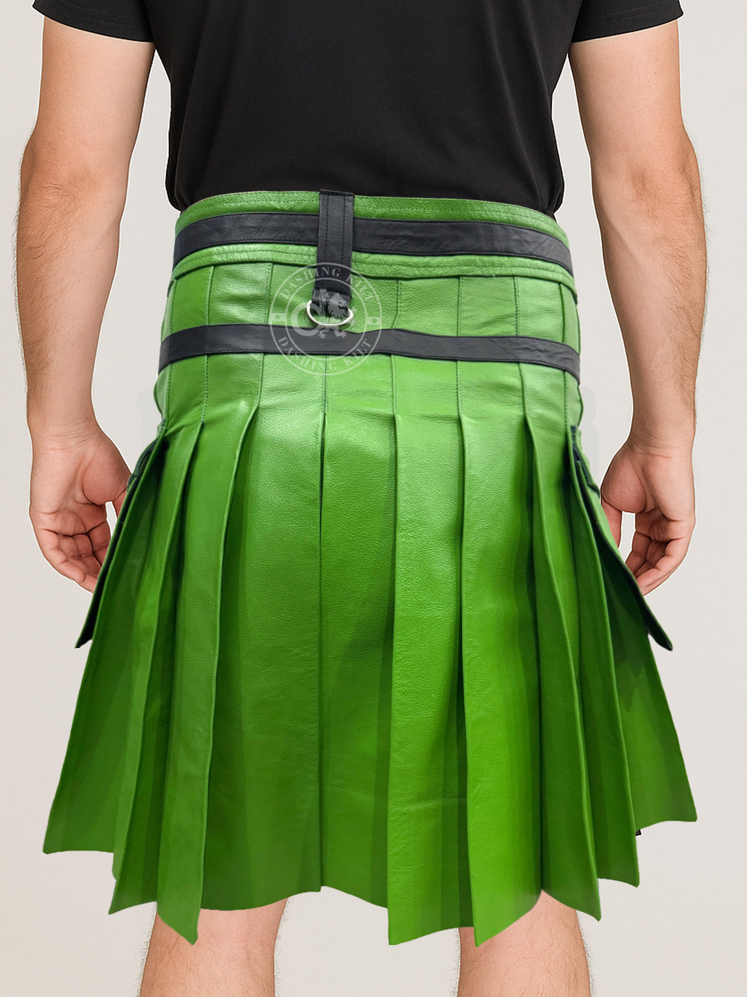 Choose from the following options to order custom made Black & Dark Green Men Leather Fashion Kilt