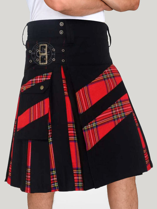 Men’s Modern Hybrid Cotton & Royal Stewart Tartan Cross Strips Designer’s Wedding Kilt
