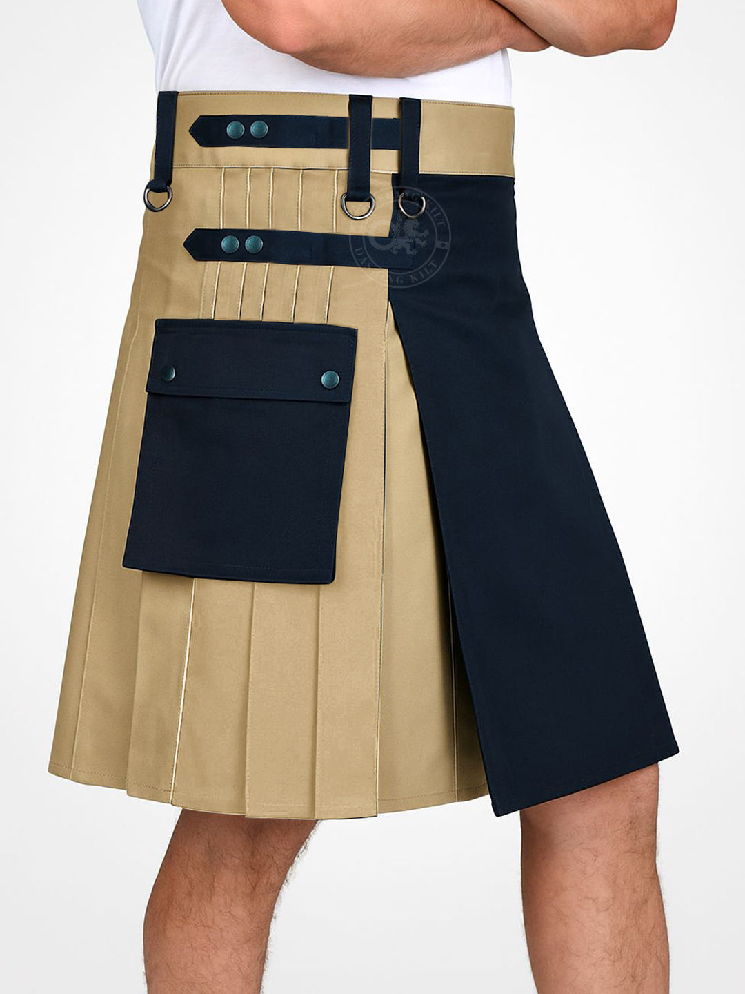 Black and khaki Double Tone kilt with Leather Straps are very attractive and eye catcher for crowd because of its handy craft features,The Black and Khaki Double Tone Kilt With Leather Straps kilt for Tactical men can be Worn on the hiking trail, on the job site or even on a battlefield due to it's heavy-Duty Construction and high Quality 100% Cotton Fabric. The Design is Finished By Belt Loops, Which are Wider Enough for most Utility Belts.