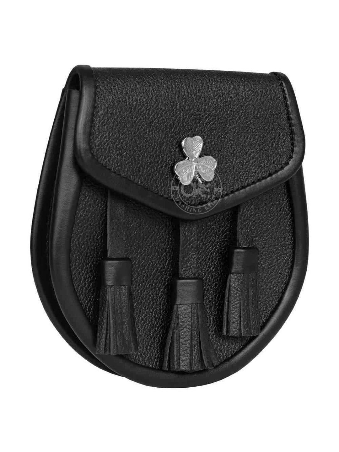 Black Leather Celtic Shamrock Sporran