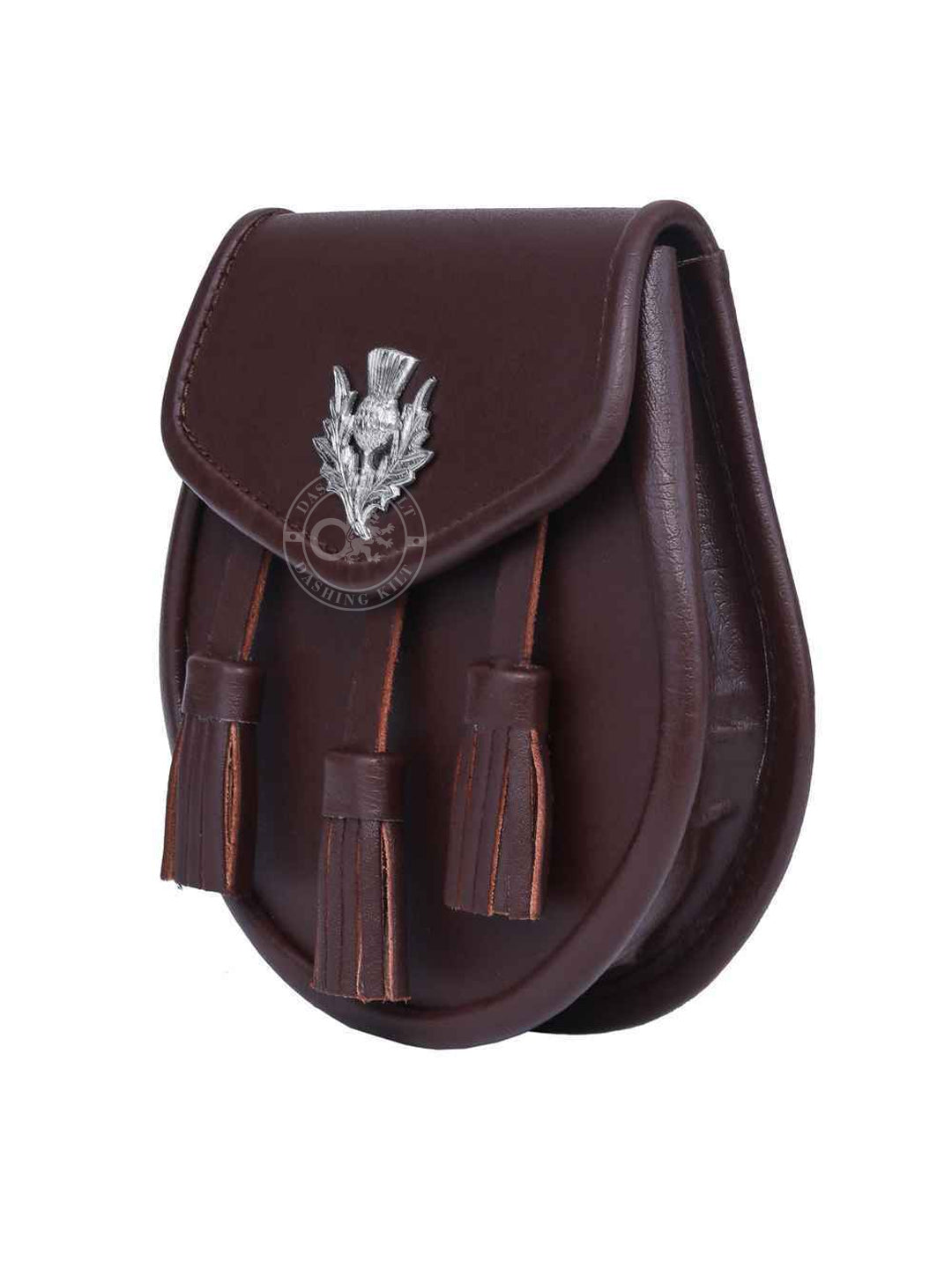 Brown Leather Day Sporran for Men With Thistle Badge-Kilt Accessory for Men’s Kilt