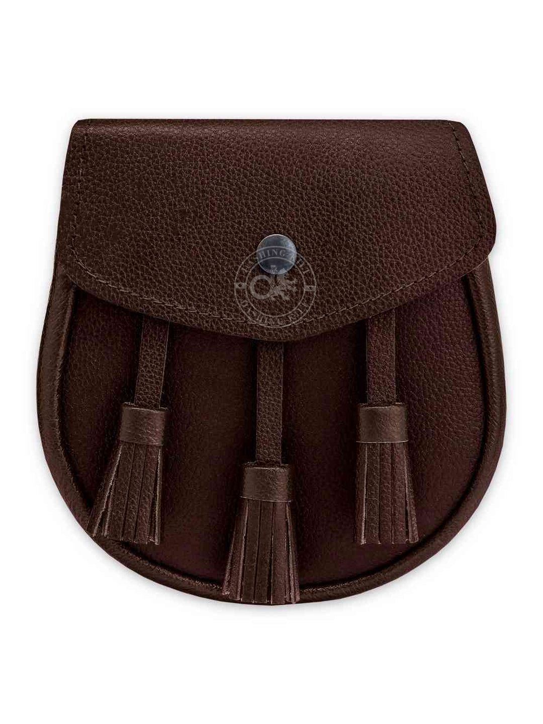 Brown Leather Simple Day Sporran with Matching Tassels-for Men Kilt Accessory for Men’s Kilt