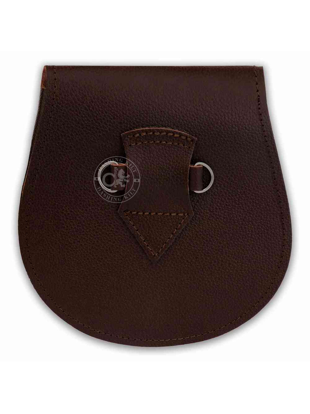This simple day sporran is meticulously handcrafted from 100% genuine brown cow leather, featuring rust-resistant hardware and a leather chain belt for secure closure. It includes a complimentary leather belt with a chromed chain. The design highlights three matching leather tassels, combining classic style with durability. Made from non-magnetic, rust-free metal, the sporran measures 7” wide by 7.5” long and fits waists up to 50”; extensions are available for larger sizes. An elegant and reliable accessory for men’s kilts, crafted with expert attention to detail.